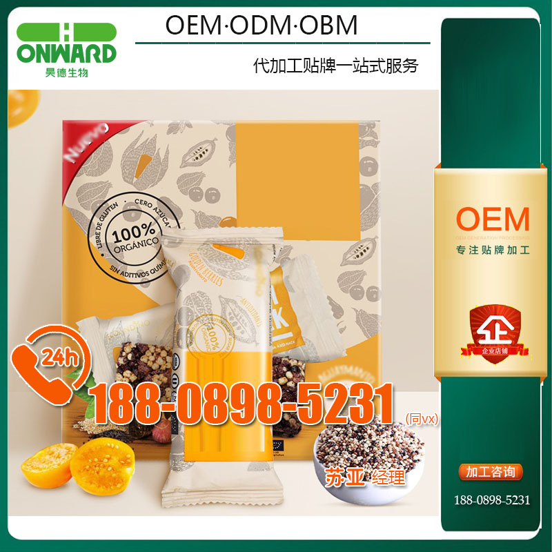 果谷物能量棒代加工ODM贴牌OEM定制企业具有成熟的产品配方,行业专家为您提供坚果谷物能量棒代加工ODM技术保障和生产保障! 坚果谷物能量棒OEM服务,坚果谷物能量棒大小批量可灵活生产,满足您各种定制坚果谷物能量棒需求!详询:188-0898-5231 苏亚 经理 QQ:2930913261
