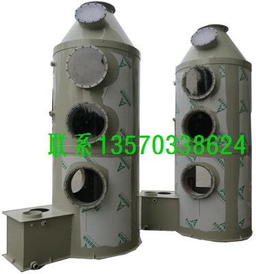 本设备采用圆形立式塔体,用焊接法分段联接而成。具体由贮液箱、塔体、进风段、喷淋层、填料层、除雾层、观检窗、出风口等组成。
