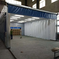 伸缩移动喷漆房整体为框架传动结构,每组框架间均有阻燃PVC布密封连接,安装快捷、外形美观,结构精巧,使用方便,制造成本低,节约投资!工作中房体沿地面铺设的轨道前后伸缩移动,采用两边分别驱动,互相连锁的方式运行,前后安全限位控制,机械运行安全稳定,操作简单,使用方便。工作区内安装有防爆照明灯,可满足生产中的照明需要!可根据客户的实际生产需要定做各种型号的非标尺寸;在无需进行喷漆流程的工作时间内,可将前室并拢,节省空间场地作为其他与喷漆交叉作业的工序所使用。
