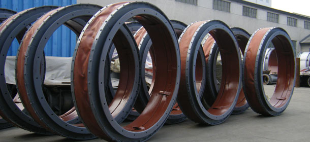 非金属膨胀节主要由柔性补偿件(非金属材料)、两端连接件(法兰或端管)、调整件(螺纹拉杆)及保温隔热材料组成。主要用于输送粉尘、气体、烟气、煤气及其它气体的管道系统因温度变化、机械振动及基础下沉所引起的位移补偿。