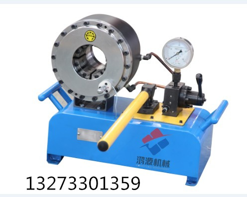 扣压机构是锁管机工作机构。压套在油缸活塞的带动下实现往复运动,对固定在前方板上的弹簧压头不断压紧和放松。将装好的接头放入弹簧压头中间圆孔内适当位置,开动电机,驱使油泵供油,通过控制电磁换向阀换向,驱使油缸活塞向前运动,通过带有内锥孔的压套,压紧带有同样锥度的弹簧压头,实现压合目的。按下开模按钮,活塞带动压套反方向运动,弹簧压头复原,这时可以将胶管接头从锁管机取出。