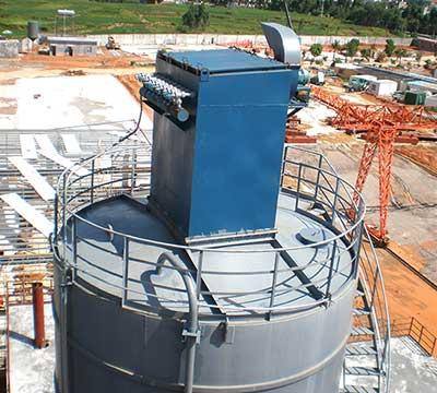 水泥仓仓顶除尘器处理风量的单位一般用m3/min或m3/h表示,但是要注意场所及烟气的温度,高温气体中水分含量较多,所以风量是按照湿空气量表示的,其中水分以体积分数表示。若烟气温度已经确定,气体由采取稀释法冷却,计算处理风量的时候还要考虑增加稀释的空气量,计算袋式除尘器所需要的过滤面积时,其过滤速度即实际过滤风速。风量设计值应该在正常风量的基础上增加5%-10%的保险系数,以保证今后工艺调整增加风量,袋式除尘器能够继续稳定使用,但应该注意保险系数不能过大,否则将会增加投资及运转费用。