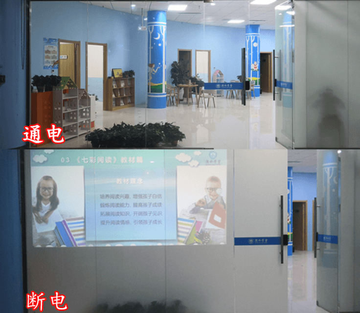 2. 投影功能:调光膜也是投影硬屏,配以触摸屏使用,在不同透明状态和光线适宜的环下,投影效果十分出众.