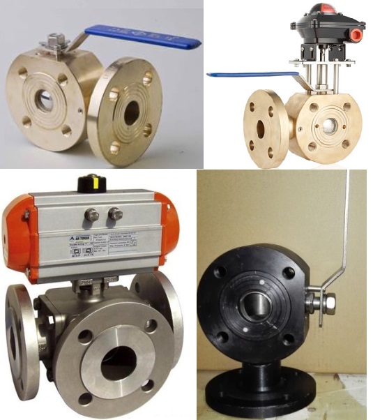 三通球阀有T型和L型。T型能使三条正交的管道相互联通和切断第三条通道,起分流、合流作用。L型只能连接相互正交的两条管道,不能同时保持第三条管道的相互连通,只起分配作用。