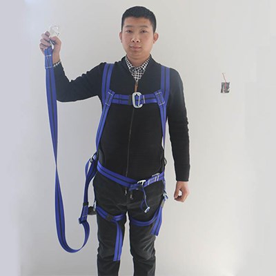2、安全带的腰带和保险带、绳应有足够的机械强度,材质应有耐磨性,卡环(钩)应具有保险装置。保险带、绳使用长度在3 米以上的应加缓冲器。