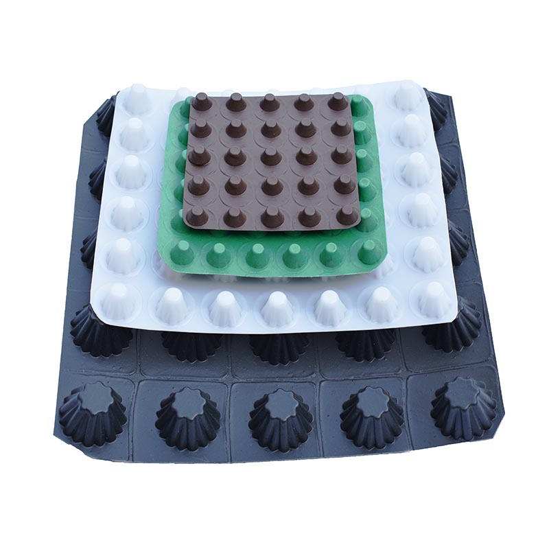 大型地下室种植顶板有时因降水形成滞水,当积水上升到排水板高度,并浸没植物根系时,可能会造成根系的腐烂。因此,设置排水层就非常排水板。排水层与盲沟配套使用,可使构造简单,也不减少物的种植面积。但传统的盲沟排水存在局限性,局部排水不通畅,容易造成积水,如果积水长期排不出容易导致植物烂根,关键是还排水板降低了整个建筑物的使用寿命。排水板的防护排水系统对建筑物的正常使用及使用寿命具有重要的保障。排水板一个具有防护、排水、收集多种功能的系统。主要是为了排出种植土中多余渗透水,保护植物根系的正常生长。而切既省时、省力、又节能、节省投资以及降低建筑物的荷载。