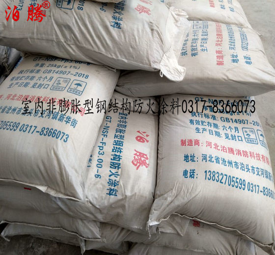 GT-NSF-Fp3.00-6室内非膨胀型钢结构防火涂料为粉料,包装为内衬塑料袋的编织袋或纸袋包装,每袋25kg,配套胶包装为普通塑料桶,重量10kg。