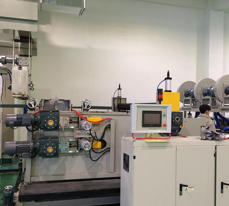 四,POE片材挤出设备 POE片材生产线 POE片材挤出机在满足加工工艺要求的前提下应尽可能降低可塑度。随着恒粘度POE、低粘度POE的出现,有的POE已经不需要塑炼而钟进行混炼。在POE工业中,Z*常用的塑炼方法有机械塑炼法和化学塑炼法。机械塑炼法所用的主要设备是开放式炼胶机、密闭式炼胶机和螺杆塑炼机。化学塑炼法是在机械塑炼过程中加入化学Yao品来提gao塑炼效果的方法。开炼机塑炼时温度一般在80℃以下,属于低温机械混炼方法。密炼机和螺杆混炼机的排胶温度在120℃以上,甚至gao达160-180℃,属于gao温机械混炼。生胶在混炼之前需要预先经过烘胶、切胶、选胶和破胶等处理才能塑炼几种胶的塑炼特性:天然POE用开炼机塑炼时,辊筒温度为30-40℃,时间约为15-20min;采用密炼机塑炼当温度达到120℃以上时,时间约为3-5min。POE的门尼粘度多在35-60之间,因此,POE也可不用塑炼,但是经过塑炼后可以提gao配合机的分散性顺丁POE具有冷流性,缺乏塑炼效果。顺丁胶的门尼粘度较低,可不用塑炼。POE得塑性大,塑炼前可薄通3-5次,薄通温度在30-40℃。乙丙POE的分子主链是饱和结构,塑裂以引起分子的裂解,因此要选择门尼粘度低的品种而不用塑炼。*POE可塑度小,韧性大,塑炼时生热大。开炼时要采用低温40℃以下、小辊距、低容量以贾段塑炼,这样可以收到较好的效果。