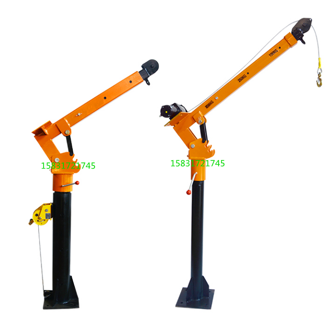 可搭配多种型号电机、可使用汽车上面的电瓶来进行工作,电压为12V/24V/220V。500公斤车载吊运机适用于更多场合,额定载荷为500公斤,旋臂有三个档位来进行调动吊装,分别为:500公斤250公斤100公斤,可搭配微型电动葫芦、电动绞盘、提升机等等,可单绳双绳搭配使用,如果订做特殊尺寸