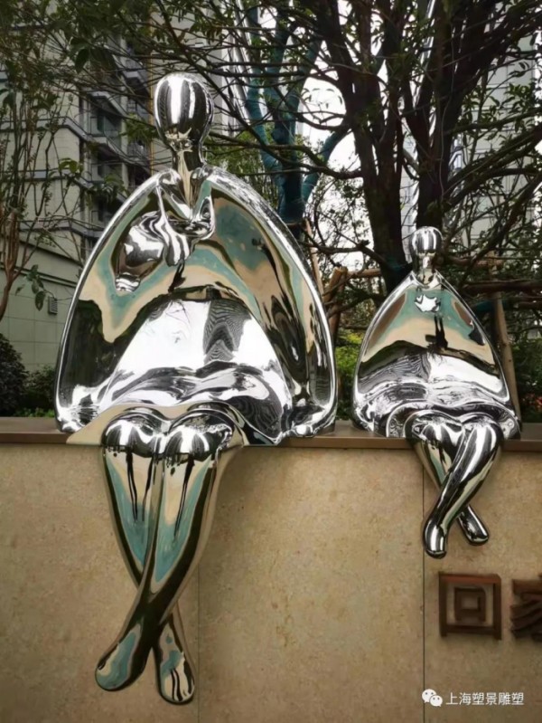 温州龙湖项目 抽象人不锈钢雕塑 亲子镜面雕塑摆件
