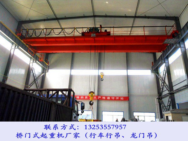 新疆吐鲁番行车行吊销售厂家生产的电动单梁桥式起重机是指轨道架空在上边,起重机主梁在架空的轨道上前后移动运行,电动葫芦挂在起重机主梁上沿着主梁左右移动,电动葫芦吊钩上下升降移动吊起重物。