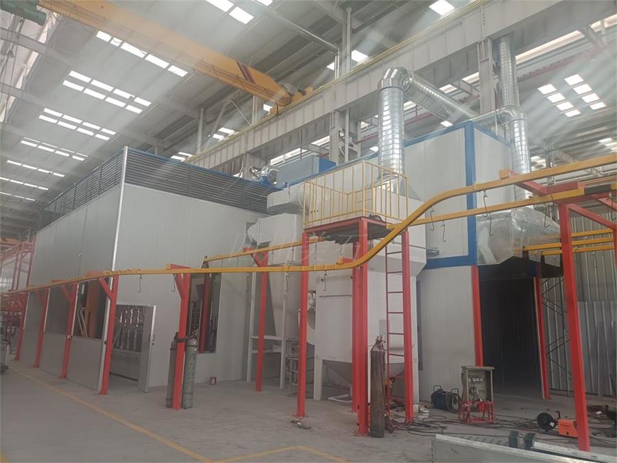 喷塑流水线主要配套设备:悬挂链输送机,不锈钢喷淋清洗剂,脱水炉,喷塑房,自动喷枪,升降机,隔离房,加热炉,固化烘干炉,废气处理设备
