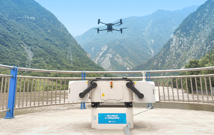 四川某公司所属太平驿水电站,位于四川省汶川县境内,地处岷江干流。高山峡谷之间,两岸山坡陡峭,随处可见悬崖峭壁,地质灾害频发。为进一步保障安全生产,今年3月,太平驿水电站引入大疆机场设备。