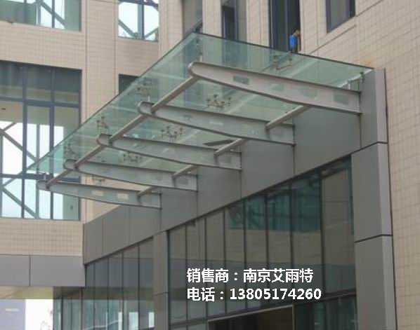雨棚是设在建筑物出入口或顶部阳台上方用来挡雨、防高空落物砸伤的一种建筑装配。艾雨特雨棚选用钢化及夹胶两种。钢化玻璃是普通玻璃经过均匀加热,当接近软化点时,根据不同厚度以相应的冷却速度均匀冷却而成。使玻璃内部产生强大的永久内应力,内层的张应力和外层的压应力处于稳定的应力平衡状态。改变了玻璃原有的物理性能,克服了玻璃原有的使用性能,增大了使用、夹层玻璃具有很好的安全性。由于中间具有塑料衬片的粘合作用,玻璃破碎时,碎片不会飞散,仅产生辐射状裂纹,安全不伤人,因此广泛用于汽车的挡风玻璃。同时夹层玻璃抗冲击强度比普通玻璃高的多,受冲击时,不易被击碎。夹层玻璃具有以上性能外,还有独特的防盗作用,由于不易被击碎进入,故比较安全。