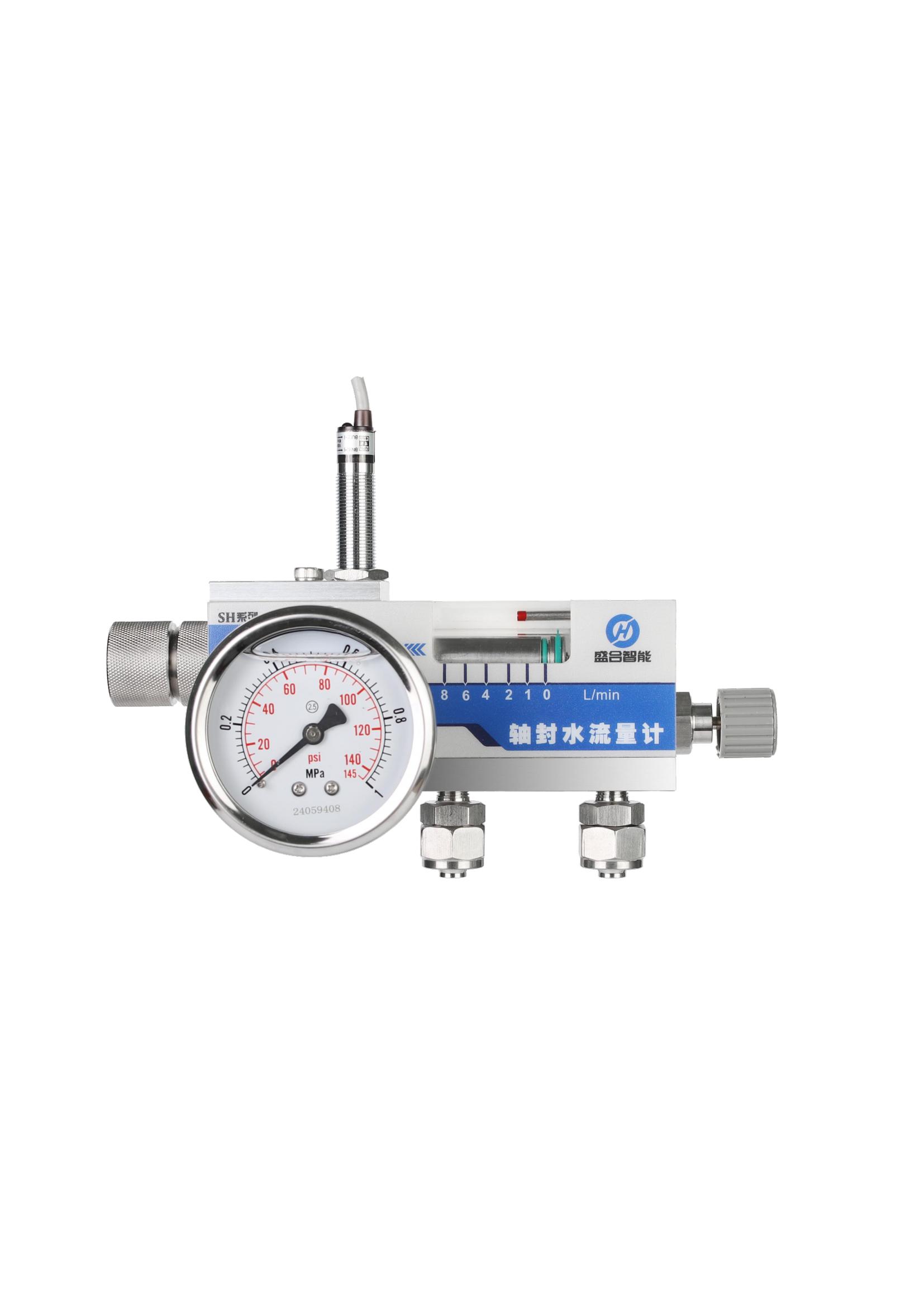 单机械轴封水流量计是用来监测和调节轴封装置内水的流量,监测压力,用于保护轴封的安全运行。适用于各种有轴封装置(包括机械轴封和填料)的设备,如:泵,混合器,筛网,搅拌器等。密封水流量开关用大截面弓形阀取代了针阀,有效的解决了堵塞。