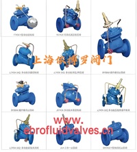 水力控制阀~【底阀H42】~【水上底阀SSDF】~【防爆波阀FA49H】~【水锤吸纳器】~【倒流防止器、防污隔断阀SH41X、SH11X】~【100X遥控浮球阀】~【200X减压阀】~【300X缓闭式逆止阀】~【400X流量控制阀】~【500X泄压/持压阀】~【600X水力电动控制阀】~【700X水泵控制阀】~【800X压差旁通阀】~【900X紧急关闭阀】~【AX742X安全泄压/持压阀】~【JD745X多功能水泵控制阀】~【F745X隔膜式遥控浮球阀】~【YX741X可调式减压稳压阀】~【YQ980001过滤活塞式减压阀】~【YQ980002过滤活塞式泄压阀】~【YQ980003过滤活塞式遥控浮球阀】~【YQ980004过滤活塞式缓闭止回阀】~【YQ980005过滤活塞式电动浮球阀】~【YQ980006过滤活塞式电磁控制阀】~【H142X液压水位控制阀】~【100A角型定水位阀】~【Y42SD减压稳压阀】~【200P减压阀】~【ZSJZ水流指示器】~【Y416、Y410、Y110减压稳压阀】~【DY30BX缓开快闭止回阀】~【F43X-10双封自净式防逆水封阀】
