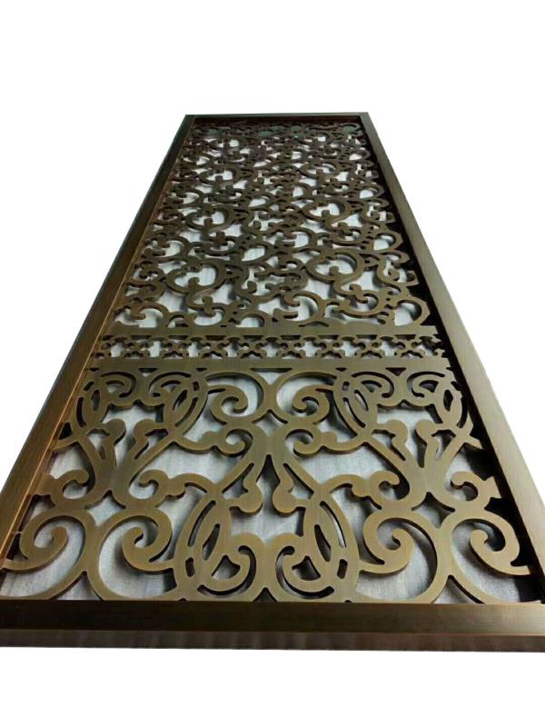 仿古做旧与其他彩色不锈钢屏风,顾名思义,彩色不锈钢屏风就是彩色不锈钢板加工而成或者后期镀上所需要的颜色的屏风,它可以迎合各种场合需要。其中仿古做旧更是别具一格,不光颜色变化还给人以时光沉淀的美感。