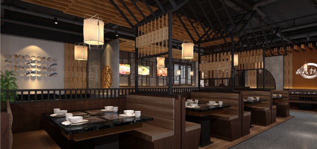 江北区300平方米火锅店设计施工-浙江国富装饰