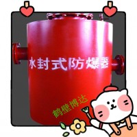 FBQ型系列水封式防爆器是安装在抽放瓦斯泵吸气侧和排气端的管路上,靠防爆器底部的水封保护井上井下、抽放泵站设备及用户安全;当瓦斯抽放时气体经由进气弯管进入水中,然后从水中析出,经出气弯管排除,由水封将进、出气管路隔离;当一端发生爆炸时,在水封的隔离下不能形成连贯爆炸,此时泄压装置的胶板被冲开泄压,保护了井上井下、抽放泵站设备及用户安全。