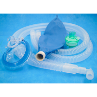3、将一次性使用麻醉呼吸管路的一段连接于麻醉机或呼吸机上,另一端通过热湿交换器连接着麻醉面罩或者雾化器上,为人体建立一个气体通道。